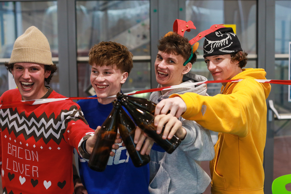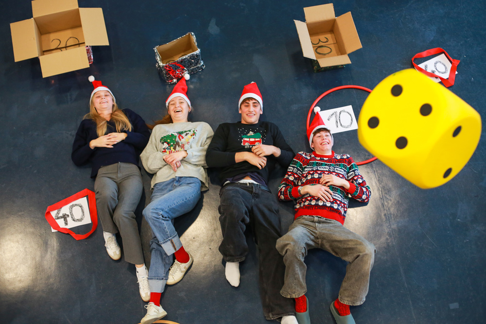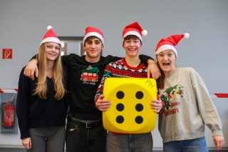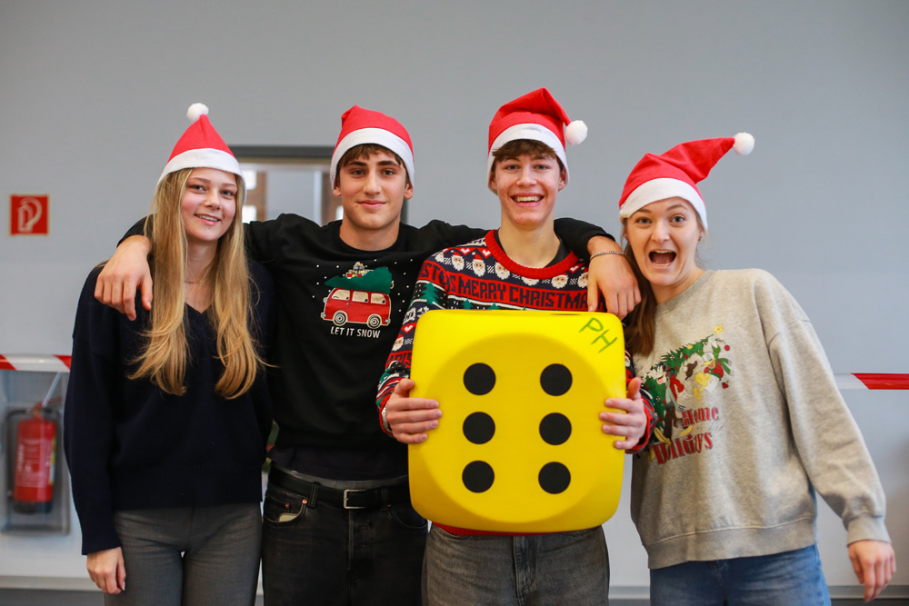 Die sorgfĂ€ltige Planung zeigte sich nicht nur in den liebevoll gestalteten Stationen, sondern auch in der stimmungsvollen musikalisch untermalten Dekoration und der reibungslosen DurchfĂŒhrung des gesamten Turniers. Höhepunkt war die Finalrunde in der Turnhalle, bei dem die 5S, 6S, 7S und die 8M gemeinsam mit unserem Lehrer- und Lehrerinnen-Team ihr Können noch einmal unter Beweis stellten. Im ersten Halbfinale konnte sich die 5S gegen die 8M plus Lehrer:innen durchsetzen und im zweiten Halbfinale war die 6S das schnellere Team und die 7S war damit im Spiel um Platz drei. Im spannenden Finalspiel konnte sich schlussendlich die 6S durchsetzen und stand am Podium ganz oben. Neben dem sportlichen Ehrgeiz stand vor allem der gemeinsame SpaĂ und der weihnachtliche Zusammenhalt im Vordergrund!