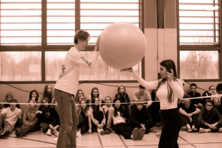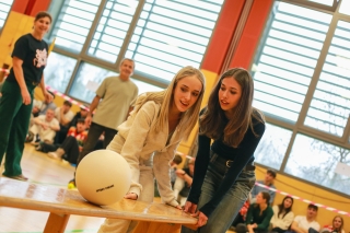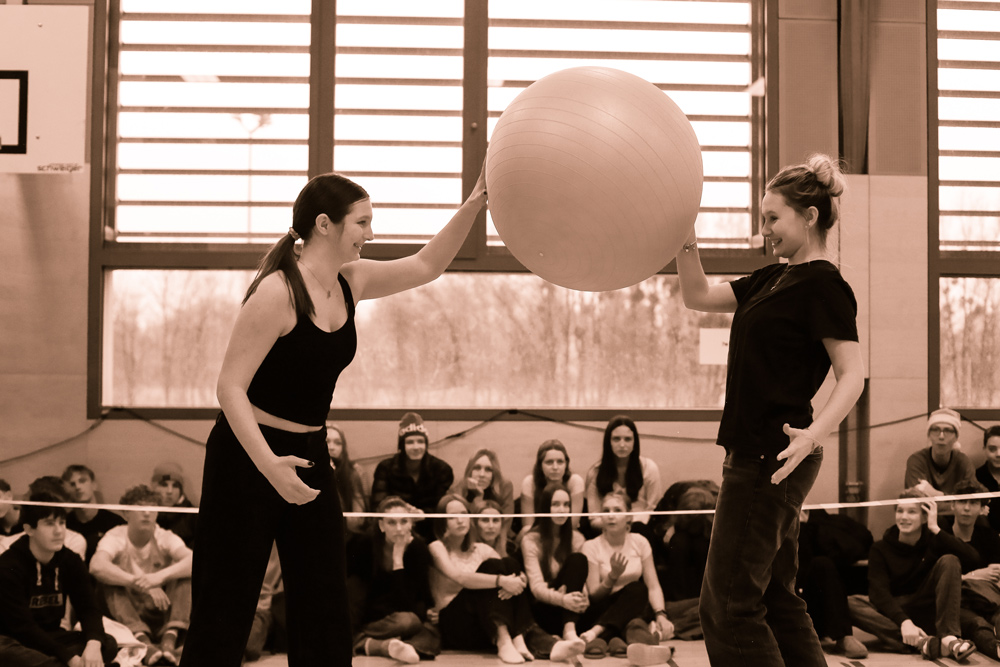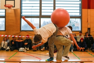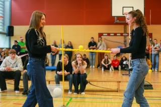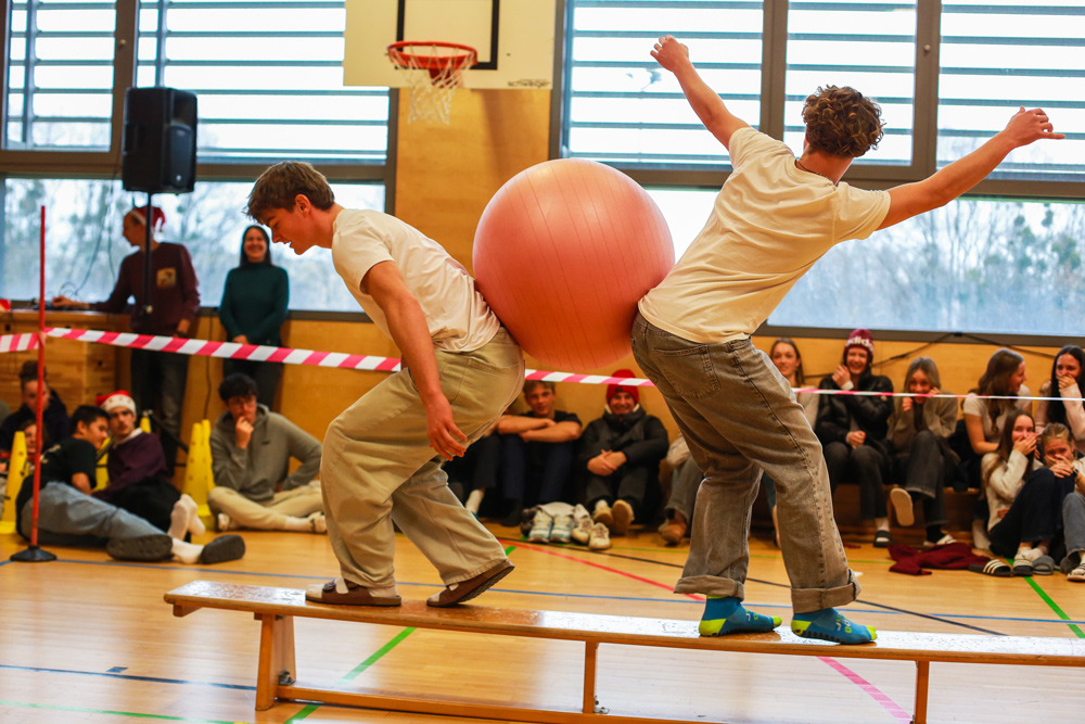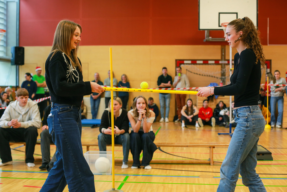 Das Weihnachtsturnier am SuM-Rg ist lĂ€ngst zu einer geschĂ€tzten Tradition geworden und sorgte auch am 23.12.2025 wieder fĂŒr Begeisterung in der gesamten Oberstufe. Mit groĂem Engagement und viel KreativitĂ€t wurde das Turnier von der 8S-Klasse im Rahmen der BSPA-Ausbildung organisiert, die dabei vorbildliche Arbeit leistete. Unter einem weihnachtlichen Motto traten die Klassen in abwechslungsreichen und originellen Spielen namens Schneeballschlacht, Santa tell me, Rentierjagd und Santas Choice gegeneinander an. Von Parcoursrennen und Staffelspielen ĂŒber Quizformate bis hin zu Geschicklichkeits- und Wurfspielen war fĂŒr Spannung, SpaĂ und Teamgeist gesorgt.