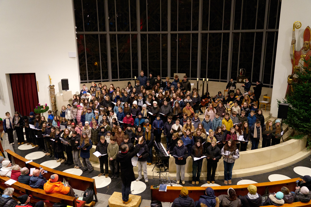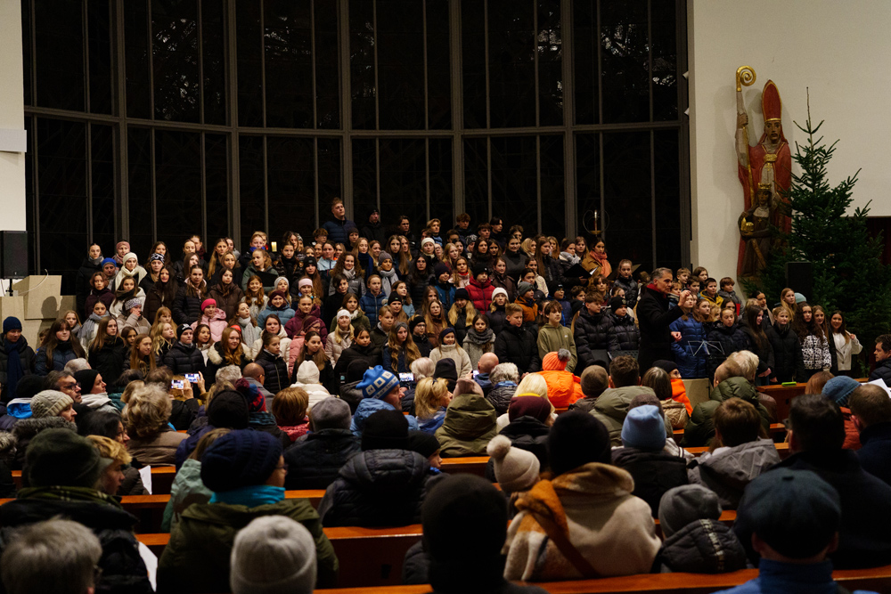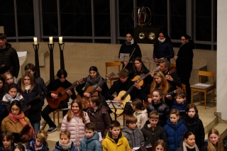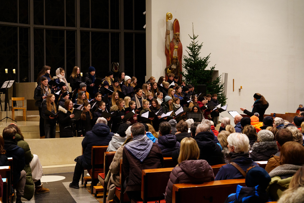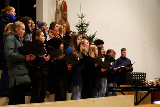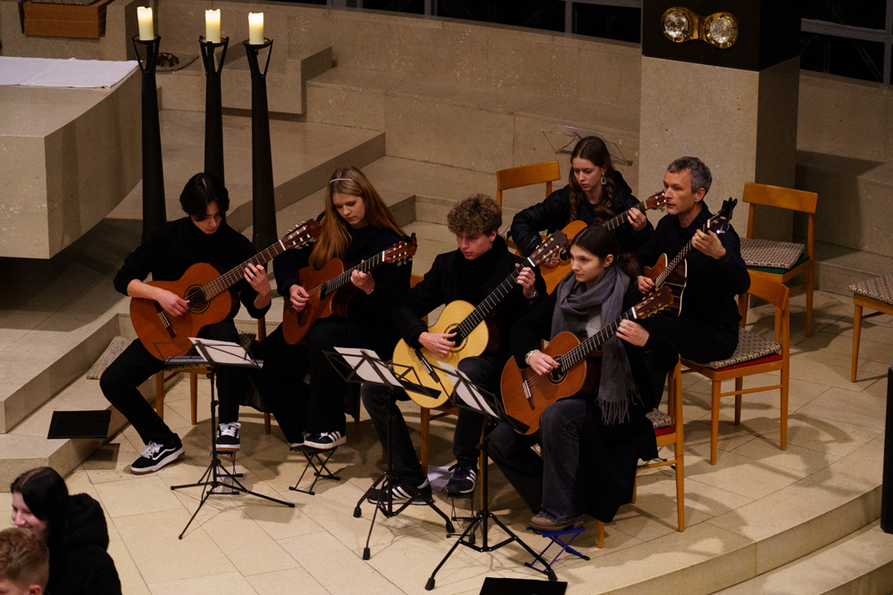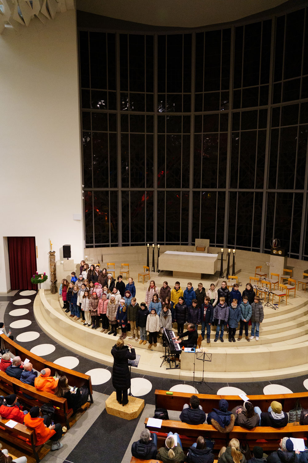 In der vollbesetzten Kirche Herrnau versammelten sich am 17.12.2025 alle Schüler:innen des SUM, Schwerpunkt Musik. Der gemeinsame Chor mit weit über 100 Schüler:innen eröffnete mit einem Kanon „Machet die Herzen weit und die Ohren für die Welt auf, dass die Liebe und das Licht einziehe“. Dieses Motto hat den Abend geprägt, Saxophone und Bassklarinette, Geigen und Flöten, ein Zauberharfen – Gitarrenensemble, Klaviersolo mit Musik einer Maturantin, Vokalgruppen aller Klassen, Oberstufenchor, Solist:innen und ein berührender Dreigesang der Geschwister Ziller. All das hat sich zu einer Reise zusammengefügt, durch die uns Melia Hermentin und Jelena Runge moderierend geführt haben. Herr Direktor Gaderer ist sehr persönlich auf das Gesungene eingegangen, auch auf die „Wachsamkeit“, die besonders in der Musik von Johann Sebastian Bach tiefgehend zum Ausdruck kommt.