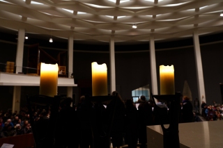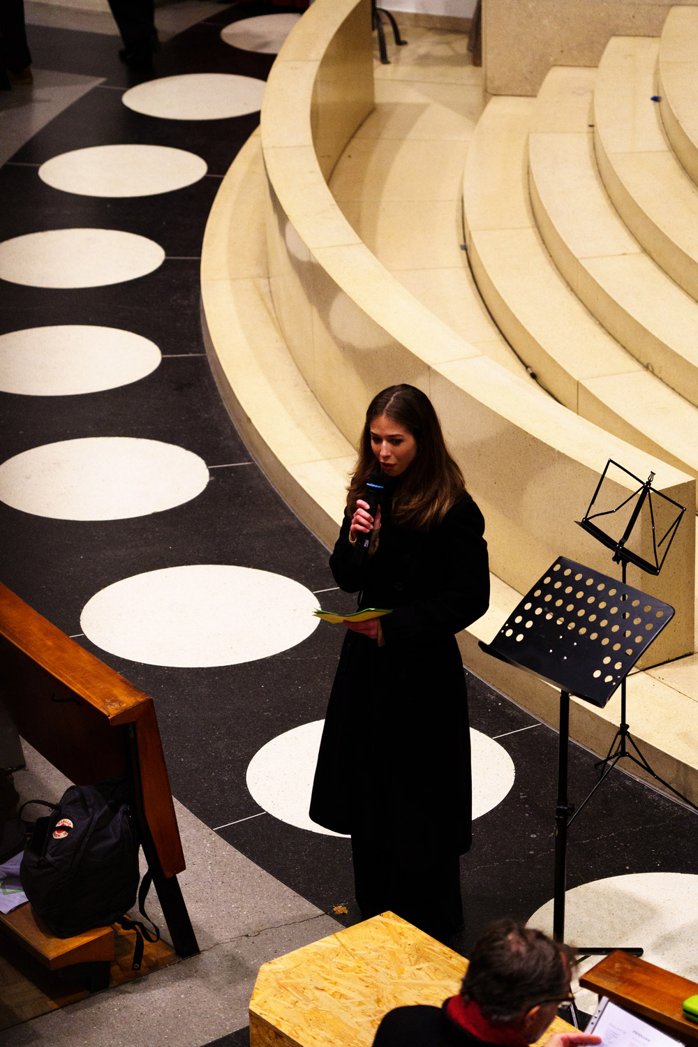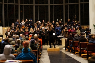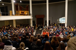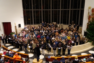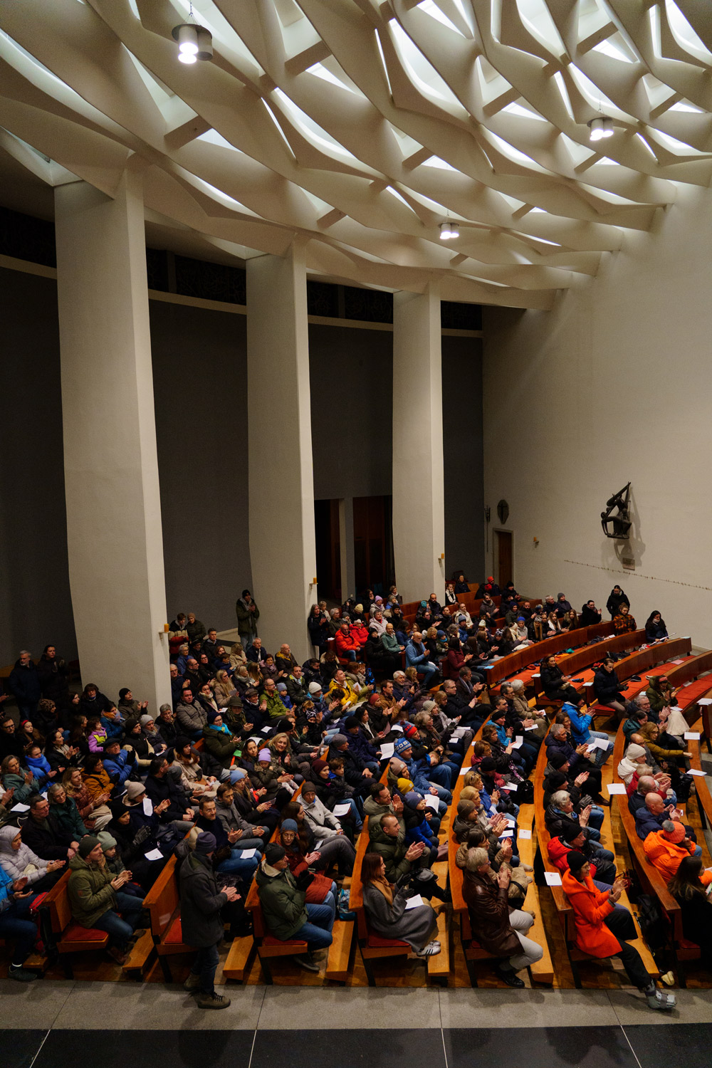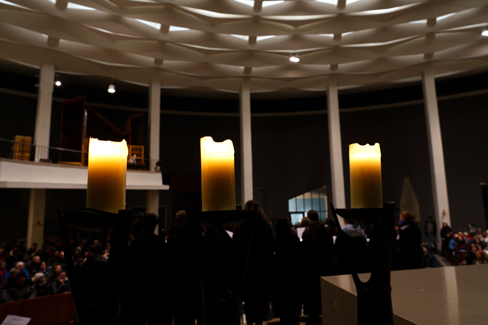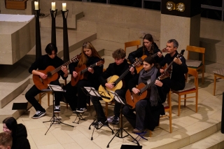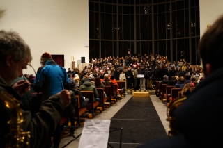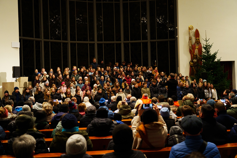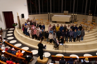 In der vollbesetzten Kirche Herrnau versammelten sich am 17.12.2025 alle Schüler:innen des SUM, Schwerpunkt Musik. Der gemeinsame Chor mit weit über 100 Schüler:innen eröffnete mit einem Kanon „Machet die Herzen weit und die Ohren für die Welt auf, dass die Liebe und das Licht einziehe“. Dieses Motto hat den Abend geprägt, Saxophone und Bassklarinette, Geigen und Flöten, ein Zauberharfen – Gitarrenensemble, Klaviersolo mit Musik einer Maturantin, Vokalgruppen aller Klassen, Oberstufenchor, Solist:innen und ein berührender Dreigesang der Geschwister Ziller. All das hat sich zu einer Reise zusammengefügt, durch die uns Melia Hermentin und Jelena Runge moderierend geführt haben. Herr Direktor Gaderer ist sehr persönlich auf das Gesungene eingegangen, auch auf die „Wachsamkeit“, die besonders in der Musik von Johann Sebastian Bach tiefgehend zum Ausdruck kommt.