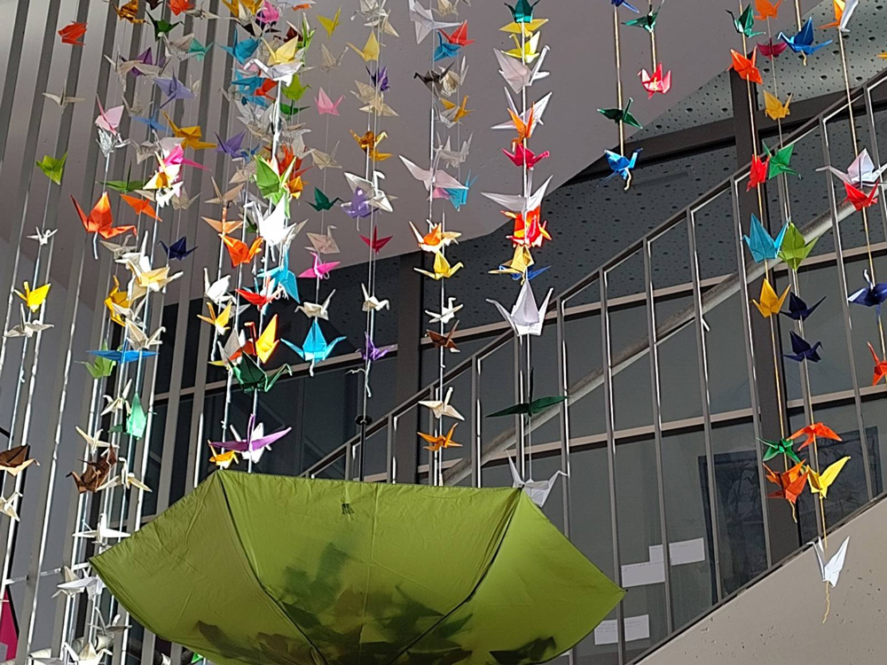 „Frieden ist, wenn…“ Installation 1000 Kraniche und fächerübergreifende Projekte