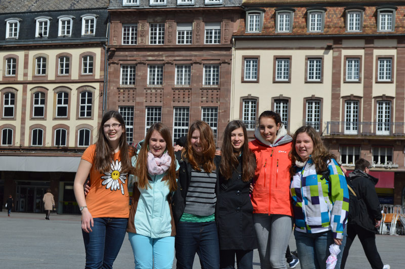 Im Rahmen des Comenius-Projekts „Auf Mozarts Spuren durch Europa“ durften wir sechs Mädchen Lea, Lara, Carina, Cristina, Laurence und Lisa von 10.-13. April nach Strasbourg in Frankreich fahren. Unser Klassenvorstand und Musiklehrer Prof. Unterkofler und unsere Französischlehrerin Prof. Roider begleiteten uns.