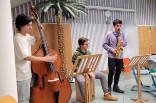 Die MKA-Rhythmus-Gruppe der 5M und 6M Klasse besuchte die Mittelschule Maxglan II, um Stücke aus dem Unterricht zu präsentieren und unsere Schule zu bewerben. Mit dabei waren am Freitag den 16.12.22 auch die mittlerweile legendären „Klezmersocken“, eine Kombo aus der 6M-Klasse, bestehend aus Kontrabass, Saxophon und Cajon.